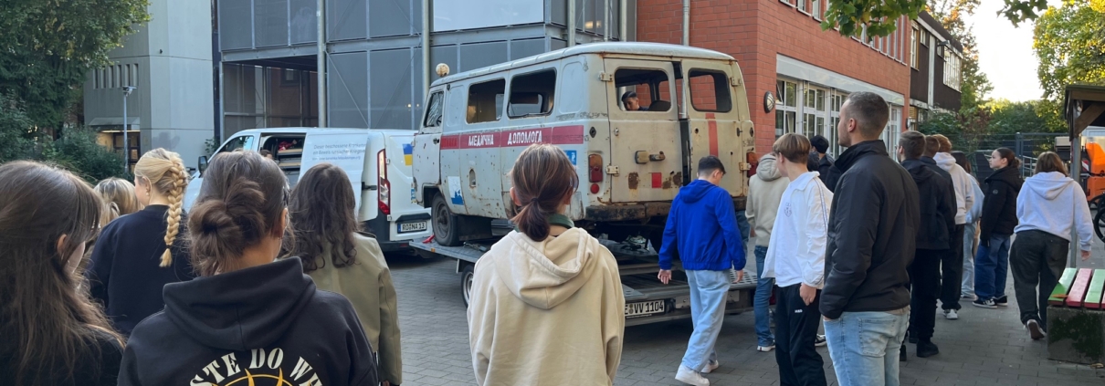Seit Tagen erschüttert die Welt ein schrecklicher Angriffskrieg auf die Ukraine. Grauenvolle Bilder, flüchtende Menschen, Leid und Tod schockieren jeden einzelnen von uns. Selbstverständlich gehen diese Ereignisse auch nicht an unserer Schulgemeinschaft vorbei.