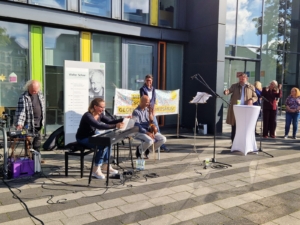 Viele Menschen setzten dort gemeinsam ein Zeichen der Erinnerung und Solidarität. Unsere SV und einige Kolleg:innen waren dort ebenfalls vertreten.