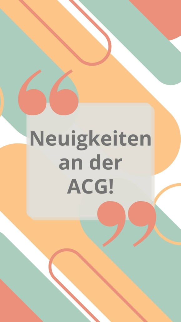 Die erste Sprechstunde von Frau Ermitsch findet am Montag, 10.11. in der Mittagspause statt. Anmeldungen für die Sprechstunde bitte über Herrn Herrmann (s.herrmann@acg..schule) oder Frau Blödorn (c.bloedorn@acg.schule). Danke.